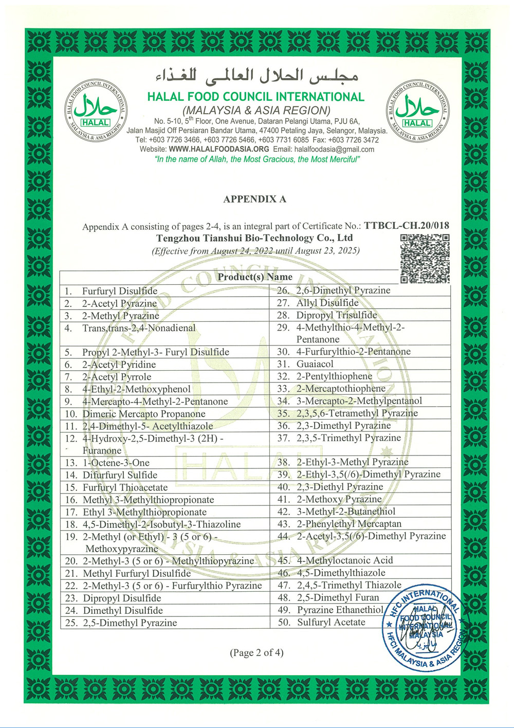 滕州市天水生物科技有限公司成立于2011年9月,是目前國內雜環(huán)類合成食品香料、日化香料和醫(yī)藥中間體生產經營的綜合性企業(yè)。坐落于山東省滕州市生物醫(yī)藥產業(yè)基地,總投資5000余萬元,占地面積約30000平方米,員工百余人。公司先后被評為高新技術企業(yè)、專精特新中小企業(yè)、科技型中小企業(yè),建有市級重點實驗室1處,并先后獲得ISO9001質量體系認證、ISO22000食品安全體系認證、kosher認證和Halal認證。是香精香料及食品配料協會會員單位及滕州市中小企業(yè)協會理事單位。